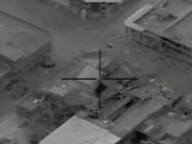 Hình ảnh không kích kho chứa tiền của IS từ viddeo do quân đội Mỹ công bố. (Ảnh: BUSINESS INSIDER)