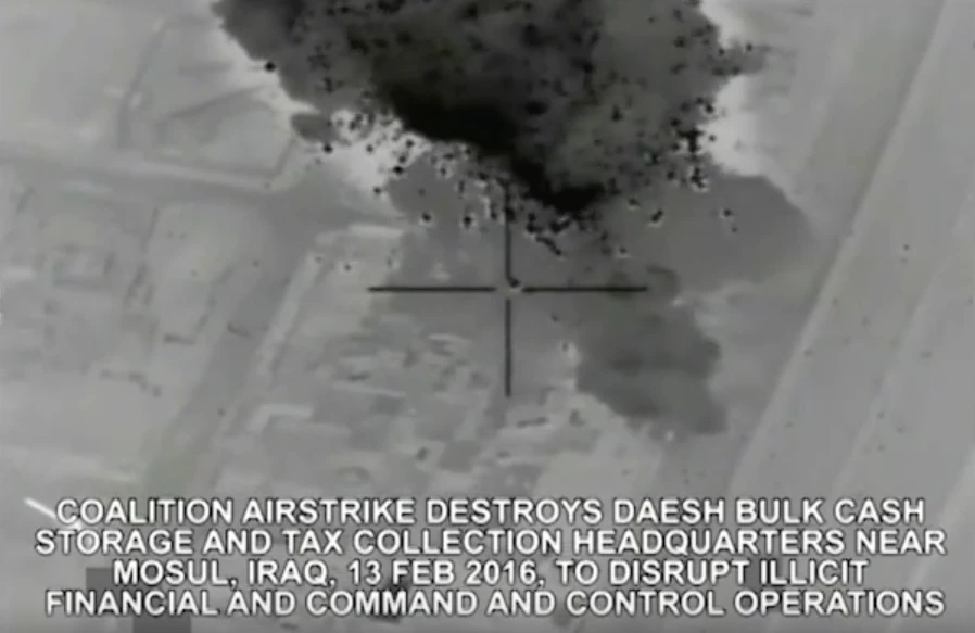 Ngày 18-2, quân đội Mỹ công bố hai đoạn video ghi hình ảnh liên minh chống tổ chức Nhà nước Hồi giáo (IS) tự xưng do Mỹ dẫn đầu không kích xóa sổ hai kho chứa tiền của IS ở vùng phụ cận TP Mosul -một căn cứ lớn của IS ở Iraq.