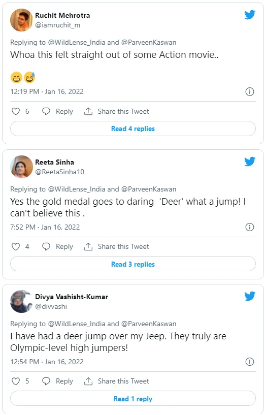 “Và huy chương vàng cho môn nhảy xa và nhảy cao đã thuộc về… chú nai” - một người dùng Twitter thích thú chia sẻ đoạn video trên trang cá nhân của mình.