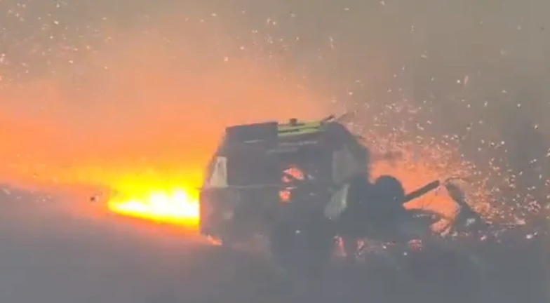 Chiếc xe bị hất tung lên trời rồi văng vào hàng rào. Ảnh: TWITTER