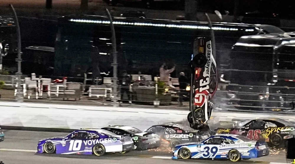 Trong vòng đua cuối cùng hôm 19-2, tay đua nổi tiếng của giải NASCAR Myatt Snider đã sống sót một cách kỳ diệu sau vụ va chạm kinh hoàng khiến xe của anh bị lật nhào, vỡ thành nhiều mảnh và bốc cháy, đài RT đưa tin.