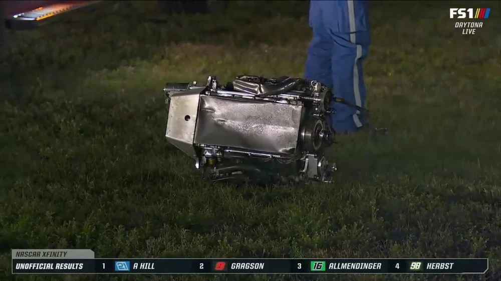 Phần động cơ của chiếc xe đua bị văng ra ngoài. Ảnh: TWITTER