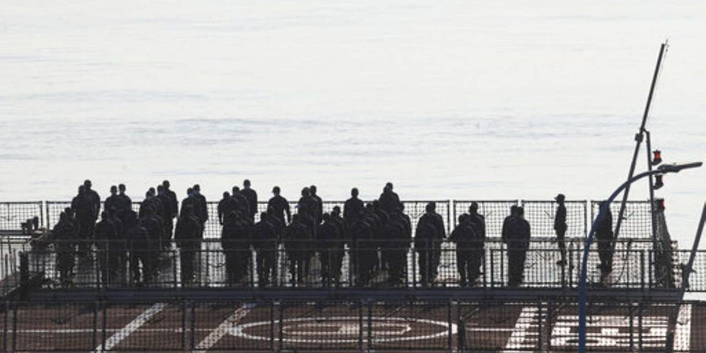 Các thành viên trên tàu cứu hộ Indonesia bày tỏ lòng kính trọng đối với các thủy thủ đoàn tàu ngầm KRI Nanggala bị chìm. Ảnh: AP