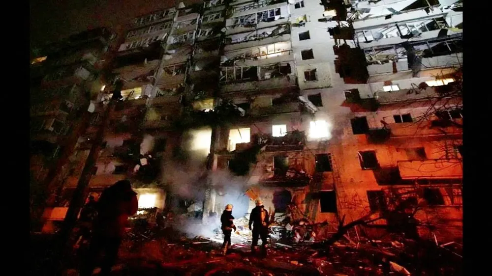 Trong khi đó, một cơ quan chính phủ Ukraine đã thông báo rằng một "vật thể bay không xác định" đã lao vào tòa nhà, làm hỏng bức tường bên ngoài và gây ra hai đám cháy riêng biệt. 150 người đã được sơ tán và 5 người bị thương trong vụ việc.