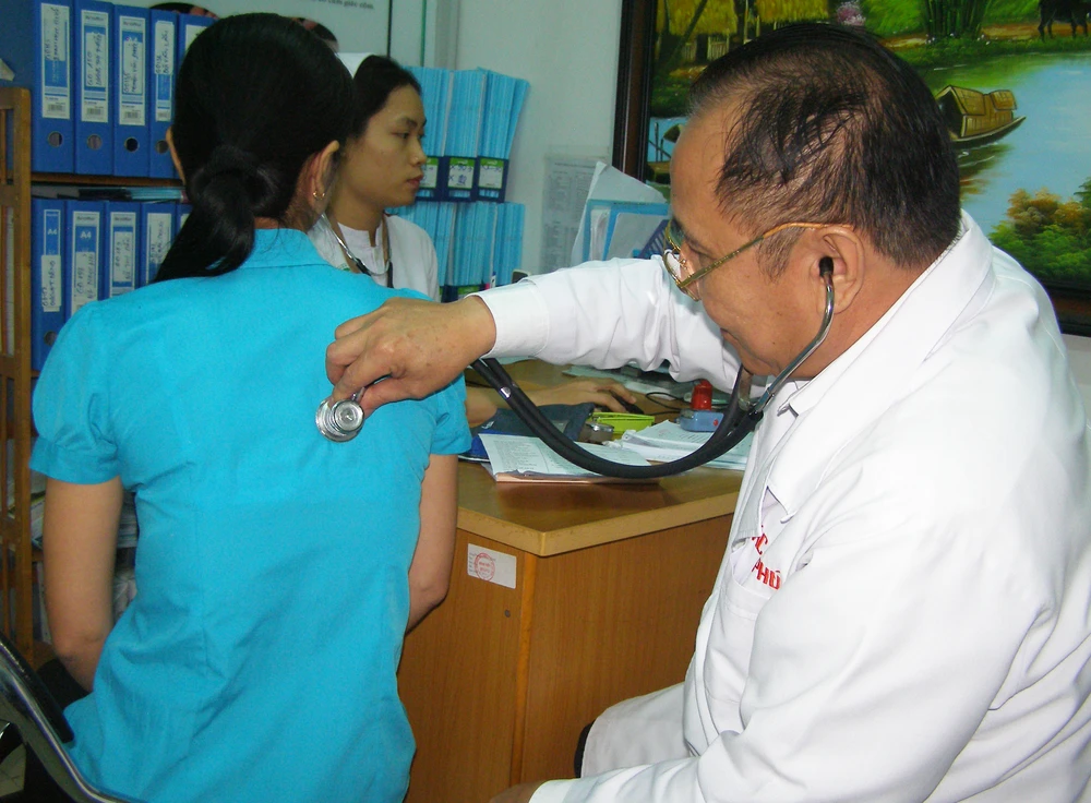 Bác sĩ đang khám bệnh cho một chị sắp lập gia đình. Ảnh: TRẦN NGỌC