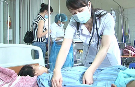 Chăm sóc bệnh nhân viêm não Nhật Bản ở BV Nhi Trung ương (Hà Nội). Ảnh: H.HÀ