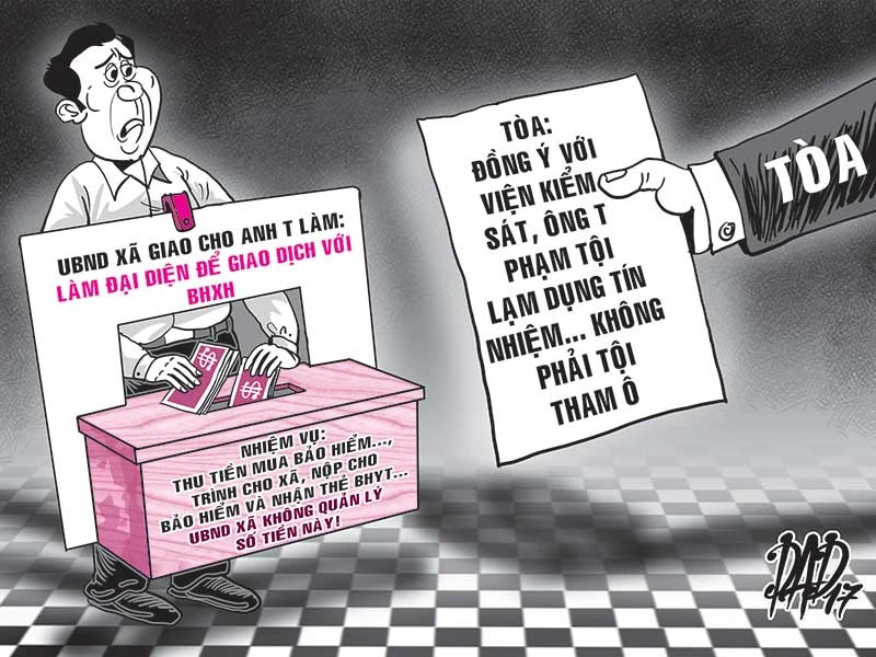 Như vậy, việc mua BHYT tự nguyện được thực hiện thông qua các thủ tục của UBND xã và BHXH huyện. Mặc dù là hợp đồng đại lý nhưng xã đã cử ông Tuấn làm đại diện. Thực tế, theo quy trình làm đại lý thì ông Tuấn là người chịu trách nhiệm thu hồi rồi chuyển cho BHXH để mua thẻ BHYT cho người dân. UBND xã không quản lý số tiền này nên không thể coi là tham ô tài sản. Ông Tuấn đã lợi dụng lòng tin của xã để chiếm đoạt tiền, gây thiệt hại cho xã...