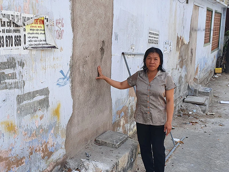 Bà Nguyễn Thị Kim Phương trao đổi về chỗ khung cửa mà bà sửa chữa.
