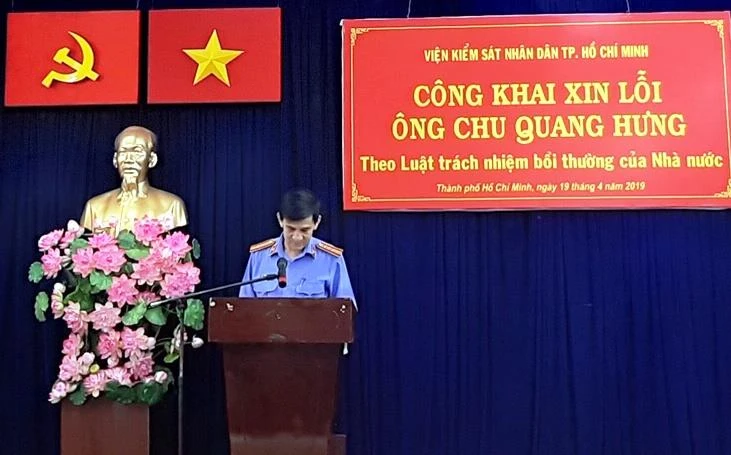Được sự đồng ý của ông, VKSND TP.HCM tổ chức buổi xin lỗi công khai đối với ông, mặc dù việc xin lỗi là muộn màng và không thể bù đắp những thiệt hại mà ông và gia đình phải gánh chịu. Thay mặt VKSND TP.HCM tôi xin gửi lời xin lỗi chân thành, mong ông và gia đình chấp nhận lời xin lỗi. VKSND TP.HCM tiếp tục thực hiện theo yêu cầu của ông về việc đăng báo lời xin lỗi, cải chính, tiến hành các thủ tục bồi thường thiệt hại cho ông sau lời xin lỗi này”.