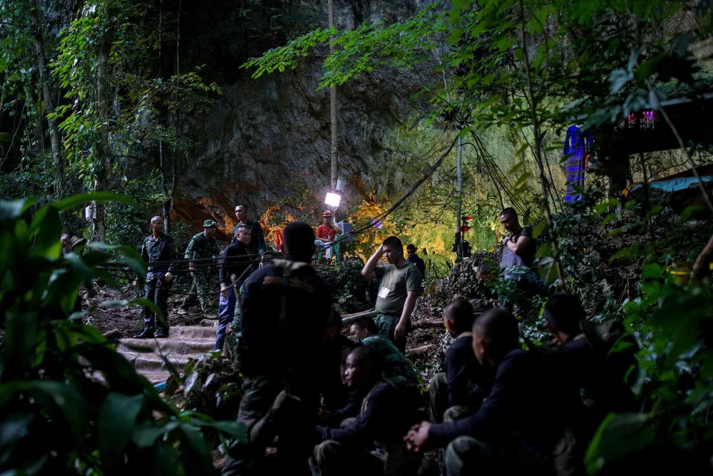 Đội cứu hộ quốc tế sau hàng loạt nỗ lực và khó khăn đã giải cứu thành công 13 thành viên đội bóng Lợn hoang mắc kẹt trong hang Tham Luang gần ba tuần. Ảnh: NY Times