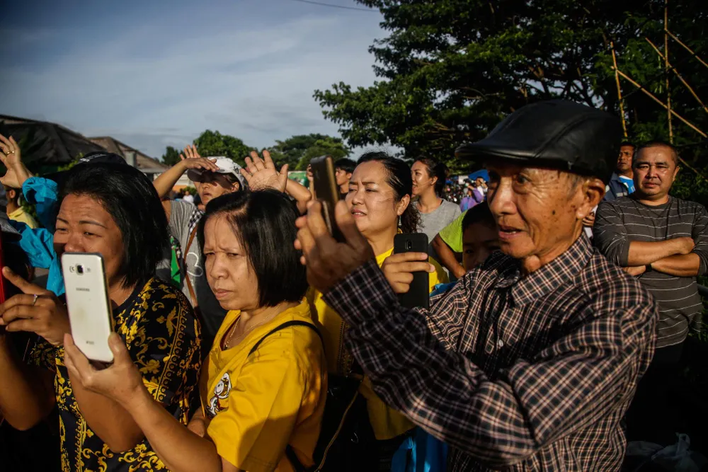 Người dân dõi theo cuộc giải cứu của đội bóng. Ảnh: NY Times
