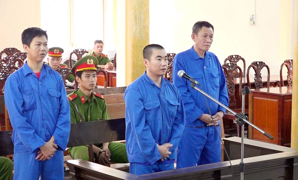 TAND tỉnh An Giang xét xử ba bị cáo về tội tổ chức cho người khác xuất cảnh trái phép vào ngày 22-4. Ảnh: HẢI DƯƠNG