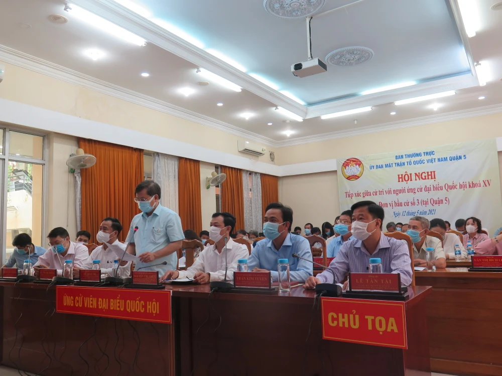 Do tình hình dịch bệnh Covid-19 nên buổi tiếp xúc cử tri diễn ra bằng hình thức trực tuyến với nhiều điểm cầu trên địa bàn quận 5.