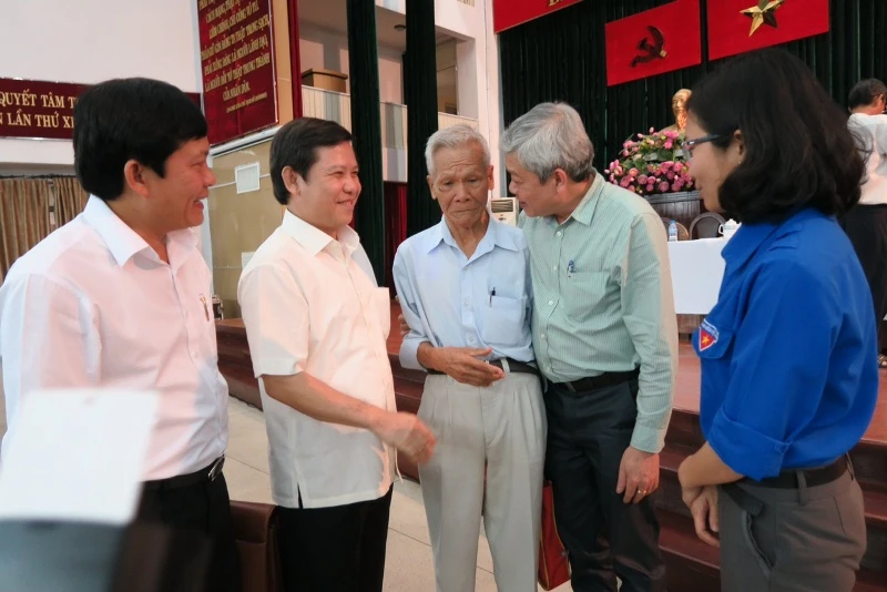 Ông Lê Minh Trí tiếp xúc với cử tri quận 5. Ảnh: TÁ LÂM