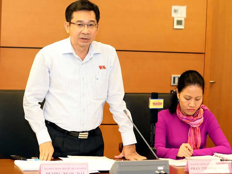 Viện trưởng VKSND TP.HCM Dương Ngọc Hải (trái) trong buổi thảo luận tổ ở  Quốc hội. Ảnh: TN