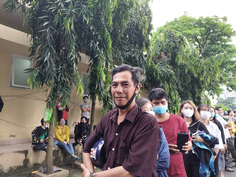 Sáng nay ngày nghỉ nhưng cả nhà dậy sớm đi từ 7h. Vì còn sớm quá nên cả nhà chưa vào được. 10h anh chạy qua lần nữa thì thấy đông quá không vào được, nên cả nhà lại đi về. Gần 12h quay lại, lần này ba cha con quyết định gửi xe xếp hàng vào.