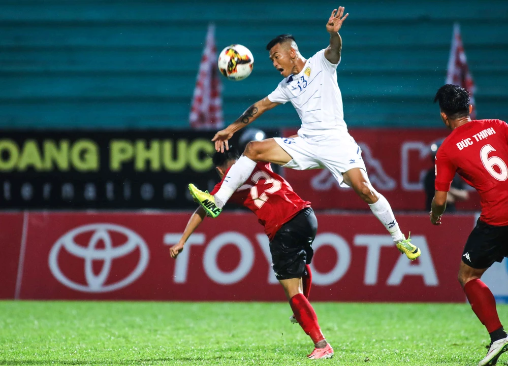 Đoàn Việt Cường (13, trắng) vẫn còn rất dũng mãnh trên sân