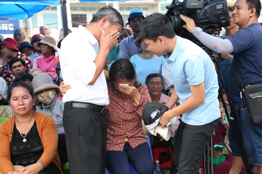 Đứng trên sân khấu chia sẻ về hoàn cảnh của Tuấn Anh, bác Tuyến không thể kiềm nén được cảm xúc của mình mà bật khóc nức nở.