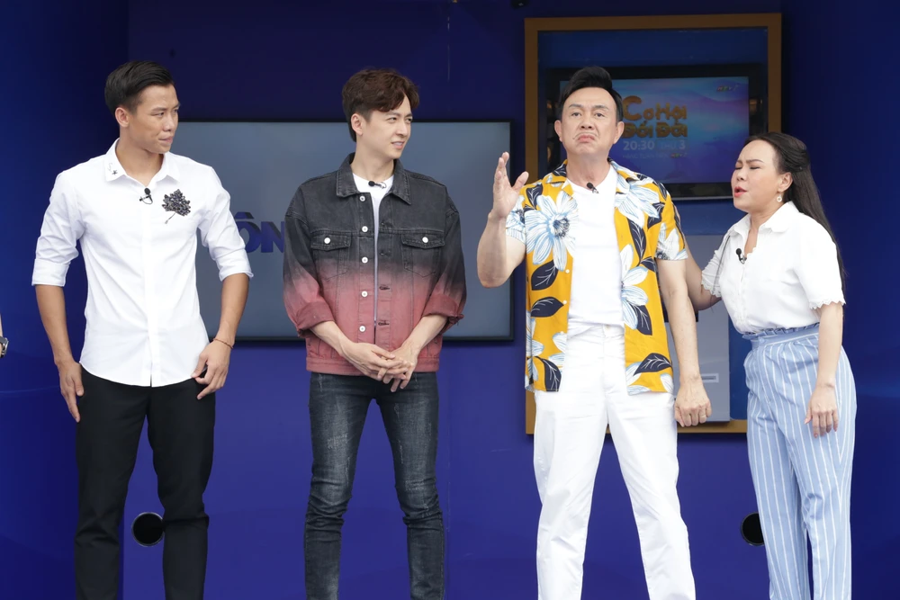 Không khí cả trường quay đang chùng xuống vì cảm động thì sự xuất hiện của ba khách mời là cố nghệ sĩ Chí Tài, ca sĩ Ngô Kiến Huy và cầu thủ Quế Ngọc Hải đã kịp thời kéo căng dây cót tinh thần của mọi người.