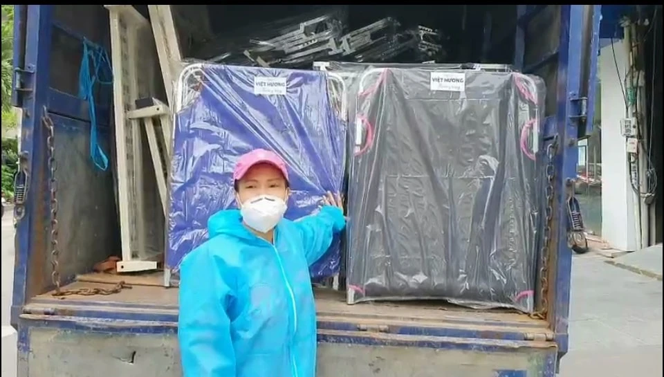 Nghệ sĩ Việt Hương tiếp tục tặng 100 chiếc giường xếp trị giá 40 triệu đồng cho bệnh viện Thủ Đức qua giới thiệu của diễn viên Việt Trinh. Ảnh: FBNV.