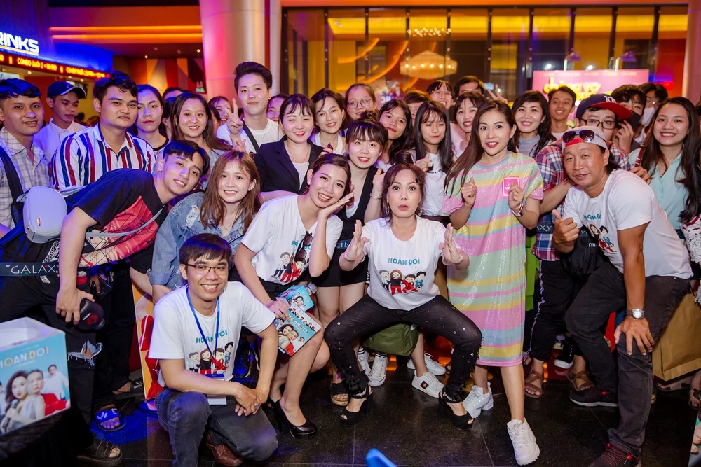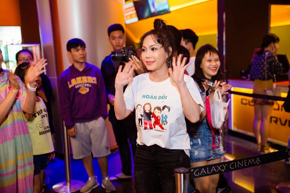 Tiếp nối chuyến giao lưu khán giả của Nhã Phương hôm trước, hôm qua (31/08) đoàn làm phim Hoán Đổi với sự xuất hiện đặc biệt của nghệ sĩ Việt Hương và Khả Như bất ngờ “phục kích” tại một số rạp chiếu phim ở TP.HCM. Giống như Nhã Phương, Việt Hương cũng diện trang phục áo thun trắng đóng thùng năng động và trẻ trung, đến nỗi Việt Hương nói đùa rằng trông mình như mới 18 tuổi và trẻ ngang ngửa Khả Như vậy.