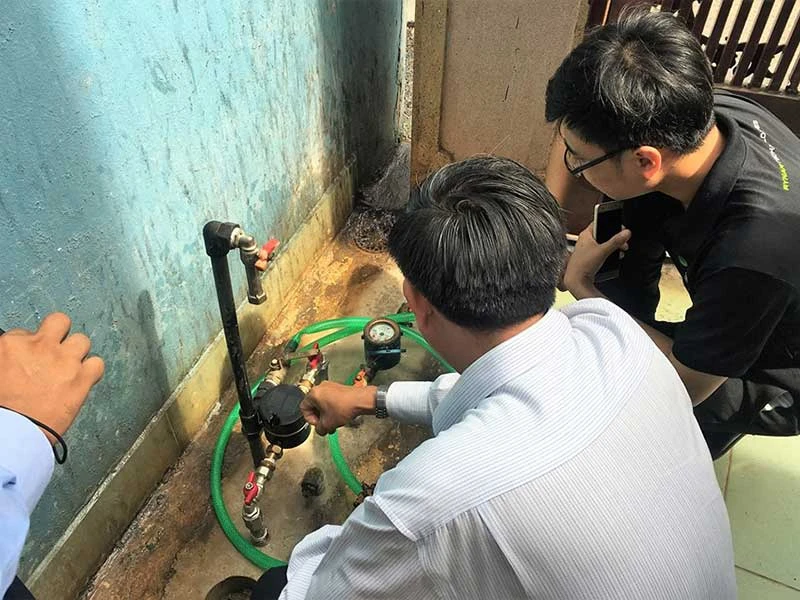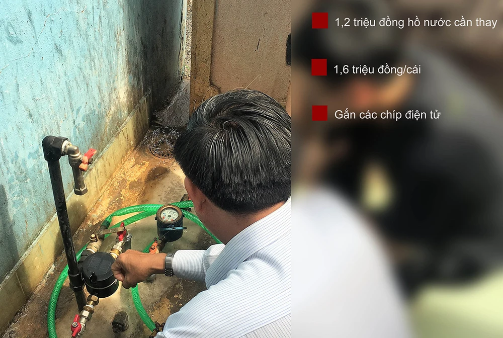 Thí điểm gắn đồng hồ nước thông minh cho một hộ dân. Ảnh: MP