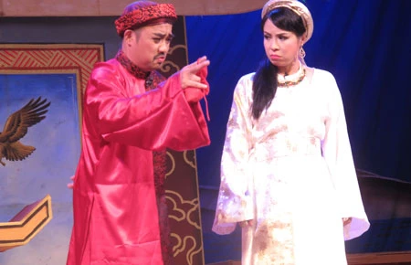 Hương Giang (phải) trong vở kịch tết mới nhất Linh vật hoàng triềuở Sân khấu kịch IDÉCAF. Ảnh: HÒA BÌNH