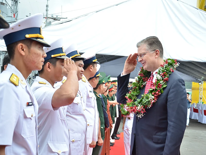 Đại sứ Mỹ tại Việt Nam Daniel Kritenbrink tham gia chương trình tàu sân bay Theodore Roosevelt đến thăm Đà Nẵng hồi tháng 3-2020. Ảnh: TỔNG LÃNH SỰ QUÁN MỸ TẠI TP.HCM