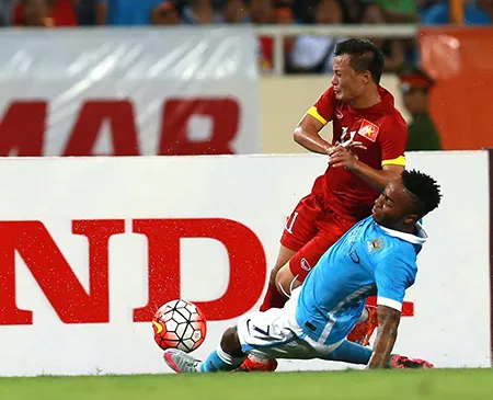 Văn Quyết là cầu thủ Việt Nam duy nhất ghi được bàn thắng trong trận đấu này. ẢNH: QUANG THẮNG.