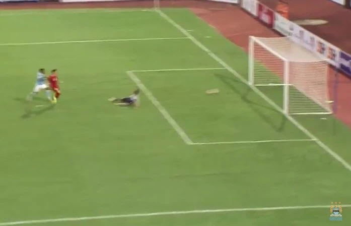 Vàoooooooooooooo. Phút 90, từ đường chuyền của Chí Công, Văn Quyết đã có pha cài người khôn khéo loại bỏ hậu vệ Man City rồi tâng bóng kỹ thuật qua đầu thủ thành Caballero rút ngắn tỉ số xuống còn 1-8.