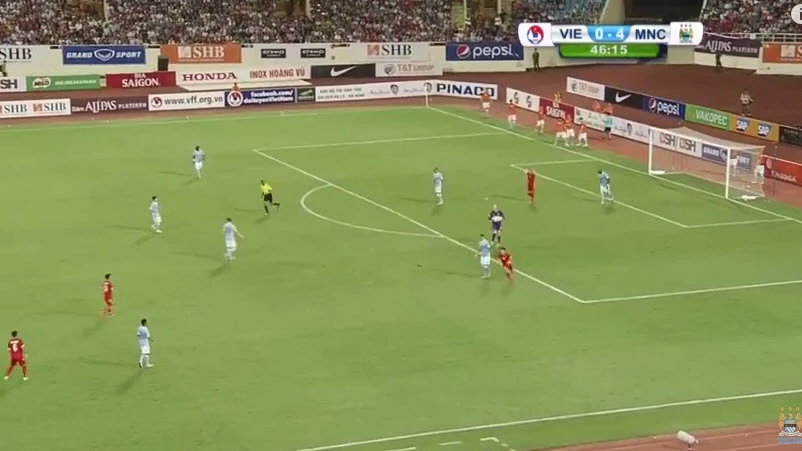 Phút 43, từ quả đá phạt góc, Công Vinh băng vào đánh đầu đi ra ngoài.