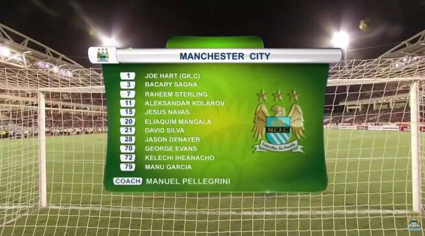 Man City:Joe Hart, Bacary Sagna, Aleksandar Kolarov, Eliaquim Mangala, Jason Denayer, George Evans, Jose Pozo, Kelechi Iheanacho, David Silva, Manuel Garcia, Raheem Sterling.