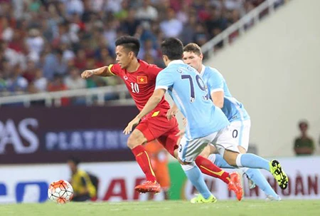 Trong khi đó với nỗ lực không biết mệt mỏi của mình, Việt Nam cũng được đền đáp xứng đáng bằng bàn thắng muộn màng rất đẹp mắt của Văn Quyết ở phút 90. Ở tình huống này, nhận đường chuyền dài của Chí Công, Văn Quyết đã khôn khéo cài người vượt qua hậu vệ Man City rồi tâng bóng kỹ thuật qua người Caballero giúp Việt Nam có bàn thắng danh dự.