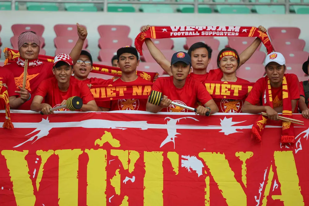 Các CĐV Việt Nam đang cổ vũ cho đội nhà rất nhiệt tình. Video: TUẤN ANH