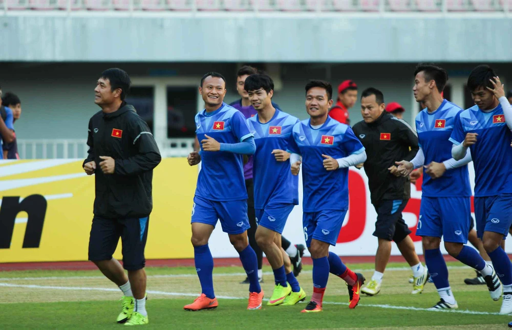 Buổi tập cuối cùng trước trận gặp Campuchia tràn đầy tiếng cười của đội tuyển Việt Nam vào hôm qua (25-11.) Ảnh: HUY PHẠM