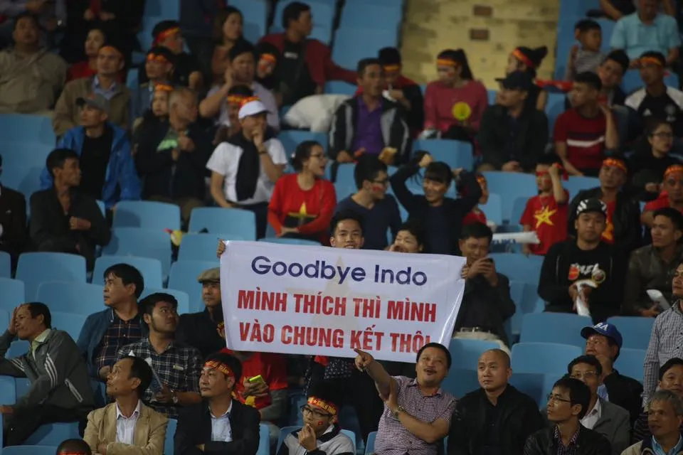 Một biểu ngữ rất dễ thương của CĐV Việt Nam: "Mình thích thì mình vào chung kết thôi". Ảnh: KHÔI TRẦN