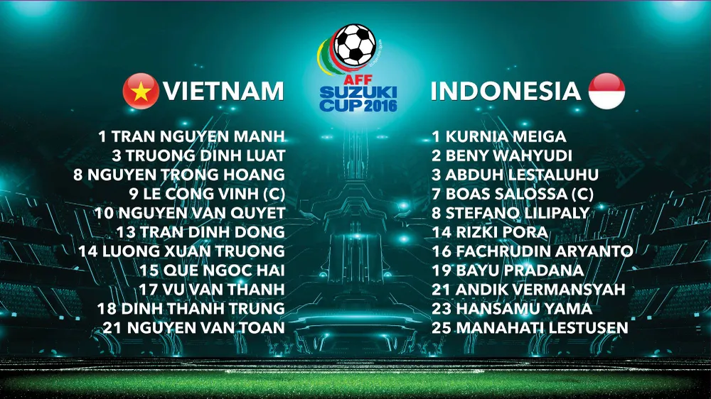 Đội hình ra sân của hai đội. Ảnh: AFF Suzuki Cup