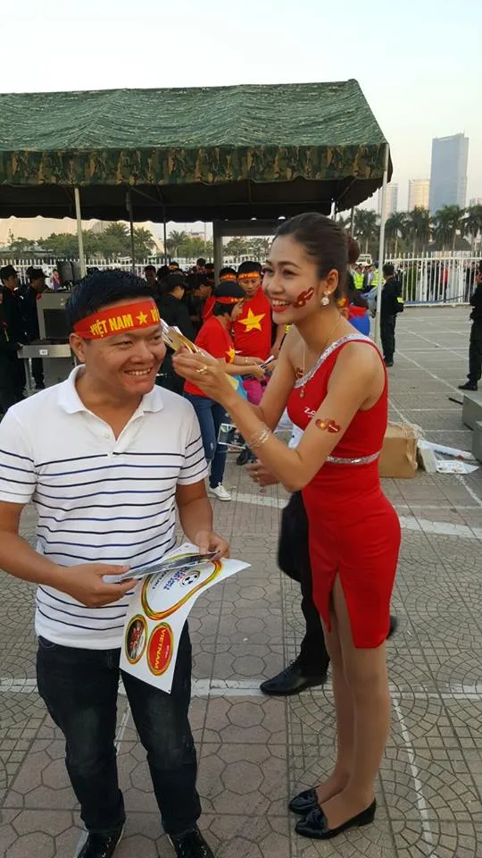 Cựu tuyển thủ Hồng Sơn cũng có mặt tại Mỹ Đình cổ vũ cho đội tuyển Việt Nam. Ảnh: KHÔI TRẦN