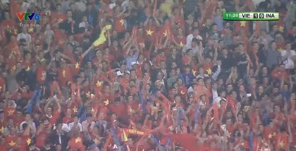 Vàoooooo. Phút 11, từ quả phạt góc của Thành Lương, bóng được treo vào, hậu vệ Indonesia đánh đầu phá bóng không tốt, Quế Ngọc Hải ngay lập tức đệm bóng vào góc cao mở tỉ số trận đấu.