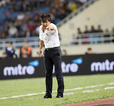 HLV Miura không hài lòng trước màn trình diễn của các cầu thủ Việt Nam trong hiệp 1. Ảnh: XUÂN HUY.
