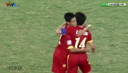Tuy nhiên, trong thế trận bế tắc, bộ đôi Tấn Tài và Minh Tuấn đã tỏa sáng khi có pha phối hợp đẹp mắt ghi bàn duy nhất trong hiệp 1. Phút 27, đội trưởng Tấn Tài có đường chọc khe thông minh xé toang hàng phòng ngự nhiều tầng của Lào cho Minh Tuấn băng xuống rướn người chích mũi giày qua chân thủ thành Phommapanya mở tỉ số trận đấu.