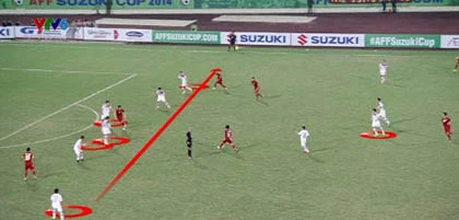Ở trận đấu này, các cầu thủ Việt Nam rất hay sử dụng những đường chuyền dài hoặc những pha tạt bổng vào vòng cấm địa để xuyên thủng hàng phòng ngự Lào. Tuy nhiên, với việc các cầu thủ Lào bố trí hàng phòng ngự dày đặc bên phần sân nhà và thi đấu rất tập trung, tuyển Việt Nam gặp rất nhiều khó khăn trong việc tiếp cận khung thành thủ môn Phommapanya. Bên cạnh đó, việc có nhiều xáo trộn trong đội hình thi đấu so với trận đầu tiên cũng khiến các cầu thủ Việt Nam phối hợp chưa được mạch lạc trong hiệp đấu này.