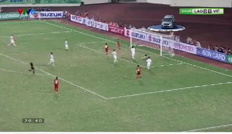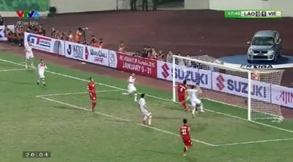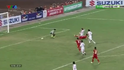 Phút 83, Công Vinh đi bóng vượt qua 3 cầu thủ Lào rồi sút bóng cận thành bật tay thủ thành Phommapanya đi hết đường biên dọc.