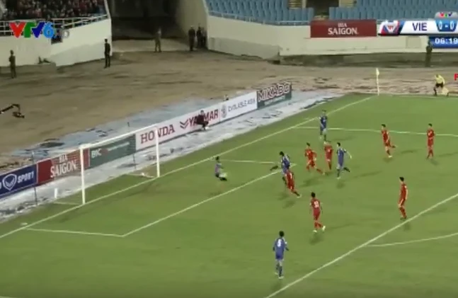 Phút 39, tuyển Việt Nam phản công rất nhanh, bóng được nhanh chóng chuyển sang cánh cho Thành Lương, tiền vệ này chuyền bóng vào cho Công Vinh xử lý rất bình tĩnh nhưng cú sút cuối cùng của anh lại bật cột bật ra.