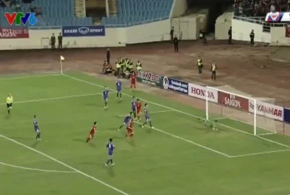 Phút 25, Văn Toàn tạt bóng vào cho Công Vinh bật cao đánh đầu ra ngoài.