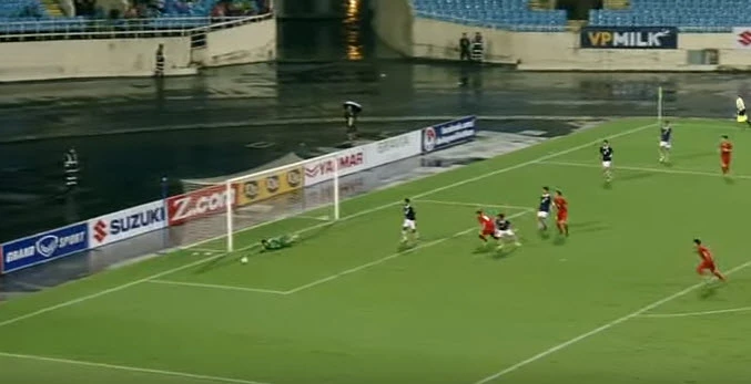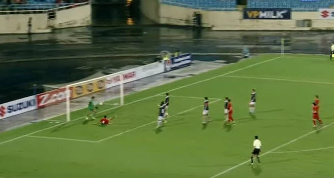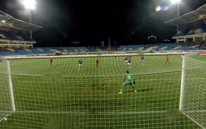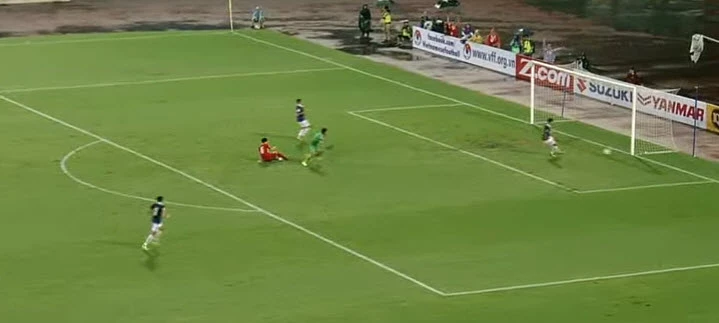 Vàooooooooooooo. Phút 59, Thanh Trung đá phạt treo bóng vào cho Anh Đức băng xuống đệm bóng cận thành vào lưới, nâng tỉ số lên 3-0 cho Việt Nam.