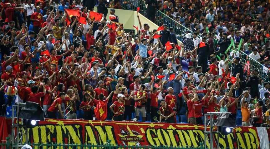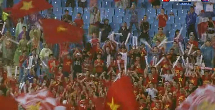 CĐV Việt Nam đến cổ vũ rất đông ở trận lượt đi ngay tại Campuchia.
