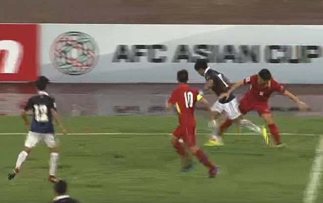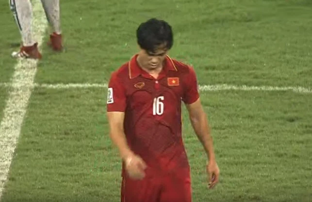 Phút 89, đội trưởng Văn Quyết của Việt Nam phải nhận thẻ vàng của trọng tài.