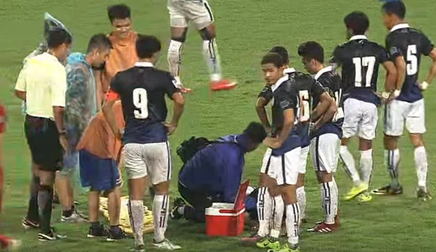 Trận đấu bị gián đoạn vì Piseth chấn thương.