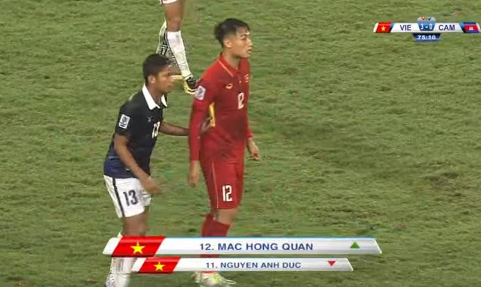 Phút 75, Anh Đức rời sân nhường chỗ cho Mạc Hồng Quân.